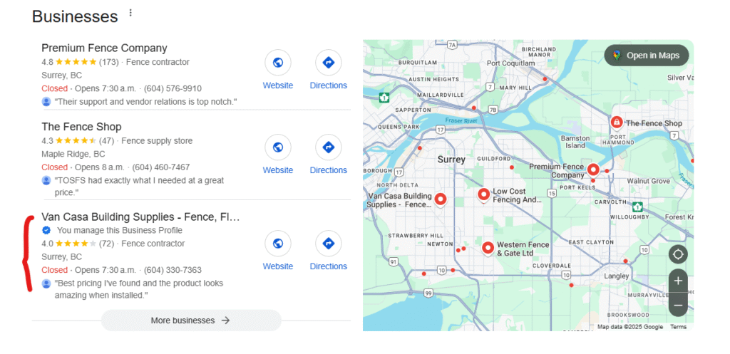 一家位于不列颠哥伦比亚省素里的高端建筑材料商店,以其种类丰富、品质优良的产品而闻名。但在竞争激烈的市场中,他们的线上表现却未见起色。尽管拥有强有力的产品阵容和优质的客户服务,该企业却因 Google 搜索曝光率低、Google 商业资料未充分利用、以及网站缺乏优化,导致错失大量潜在客户,流量也不断流向优化更好的竞争对手。