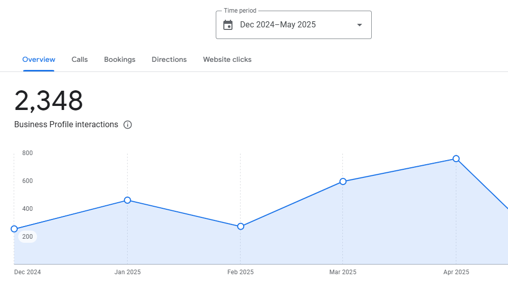 由于资料内容优化、高质量视觉内容和定期更新,该企业的 Google 商业资料互动量增长了 3.1 倍,吸引更多潜在客户主动了解和联系。